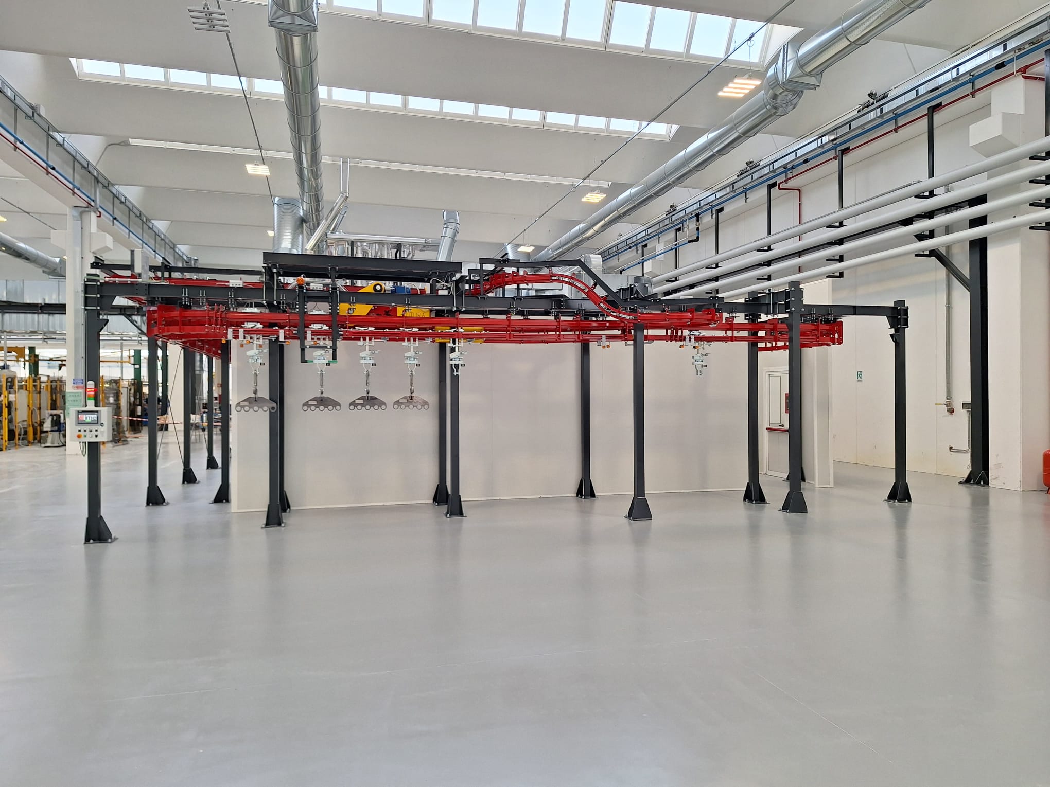 L’impianto si caratterizza per la flessibilità dei cicli di verniciatura e per l’accurata climatizzazione dei locali dove si svolgono i processi. Nello specifico, l’impianto permette la singola o doppia applicazione di vernici, sia manuale che automatica, e con o senza essiccazione intermedia.